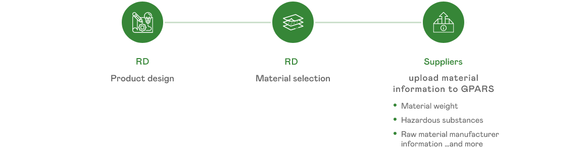 AUO has established a supplier management standard for raw materials, requiring suppliers to comply with AUO's sustainable material GPARS standard based on international regulations such as REACH, GADSL, and IEC 62474. AOA incorporates this standard into its procurement process, and all material suppliers must fill in relevant necessary information in theGPARS (Green Parts Aggregation and Reporting System)including information about the raw material manufacturers.
