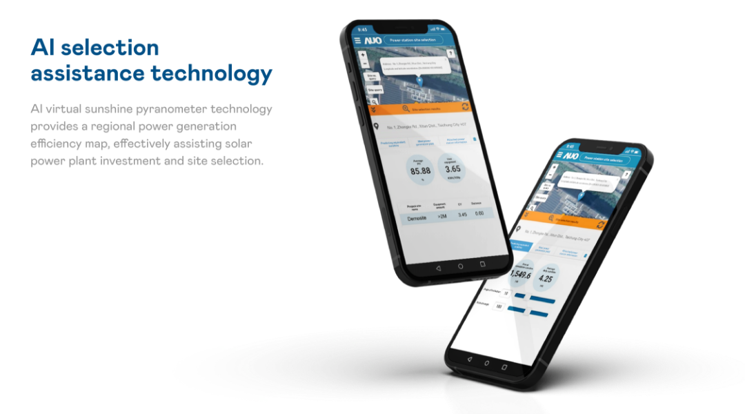 - AI selection assistance technology; AI virtual pyranometer technology provides a regional power generation efficiency map, effectively assisting solar power plant investment and site selection.