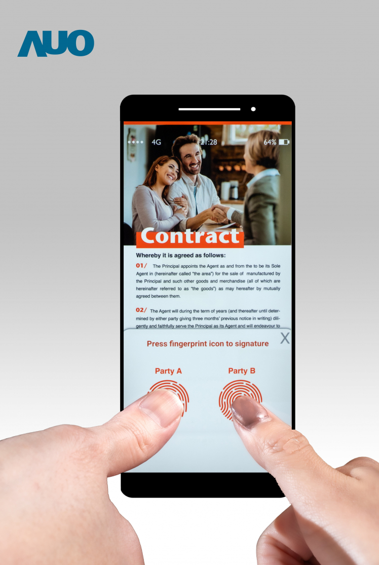 TFT Fingerprint Scanning Sensor with Ultra-high Pixel Density More Rigorous Identity Authentication Achieved by Combination of Heartbeat Detection As the security control of money flows becomes increasingly strict, identity authentication relying on a single fingerprint reader is no longer sufficient. This time, AOA will present the unique ultra-thin LTPS TFT optical fingerprint sensing module, with a sensing area of up to 2.9-inch, integrated under OLED panel and a 6.4-inch LCD panel incorporating finger recognition, touch and display functions. Besides the application of in-cell touch technology and a three-in-one integrated IC, the 6.4-inch LCD panel breaks through the limits when integrating CMOS image sensor structure to existing panels to offer a large customized sensing area of up to 50mm x 50mm. Both technologies support multi-finger authentication and are exceptionally ideal for financial transactions, as they can substantially improve the security of biometric recognition. In the meantime, AOA will also demonstrate a TFT optical fingerprint sensor with the world’s highest pixel density(*) up to 1000PPI, which can not only clearly recognize the fingerprints of delicate newborn baby fingers, but also detect the heartbeat through the slightest grayscale change of fingertip pulse to achieve a more accurate identity authentication and significantly improved security and anti-counterfeiting level.